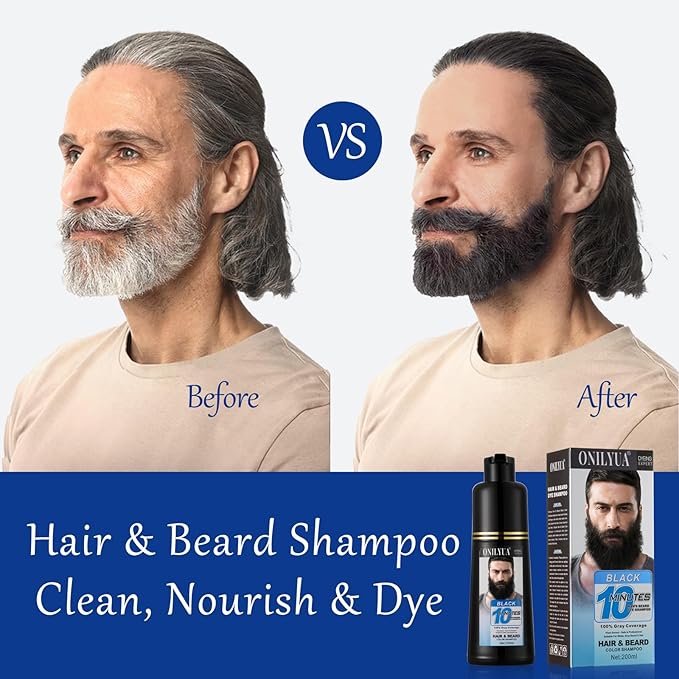 - MULTIPLE USE for GRAY DYE : No need to worry your gray facial hair makes you look like a geezer. Onilyua mens beard dye makes you exude strength and masculinity in any situation. Works on all levels of facial grays and various beard types and textures, removing gray hair with every wash, not easy to fade.