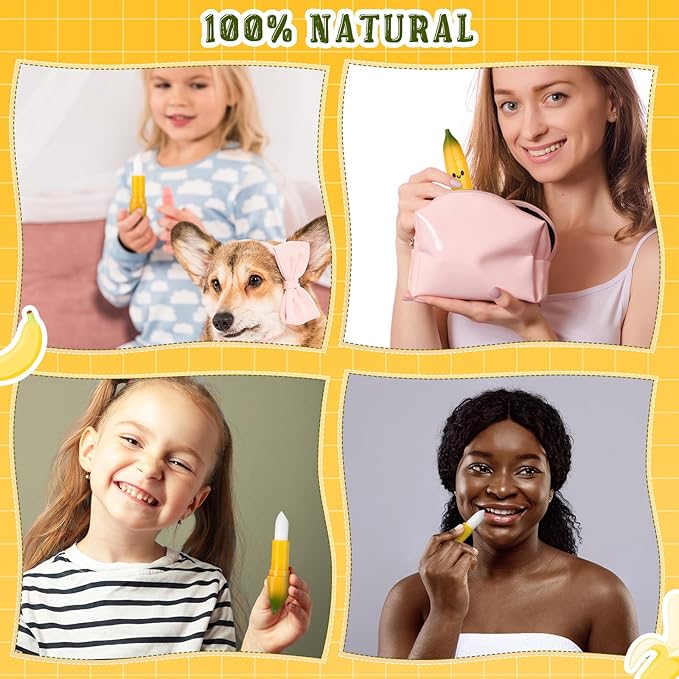 - Interesting Banana Design: our lip balm bulk gift for employee is not only practical but also has an attractive aesthetic design; Its appearance is designed in a unique banana shape and printed with a black smile face expression, which is cute and vivid, this interesting design can be used in your daily life; Adds a touch of fun; It's also so easy to use, you just pull the cap open slightly and twist the bottom to apply to your lips