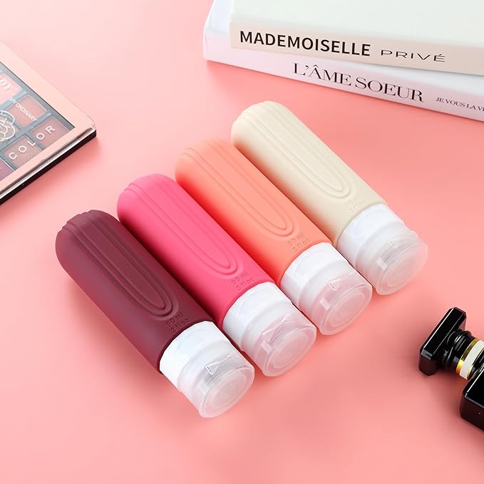 Travel Bottles for Toiletries, Tsa Approved 3oz Travel Size Containers BPA Free Leak Proof Refillable Liquid Silicone Squeezable Travel Accessories for Shampoo Conditioner Lotion (4 Pack)