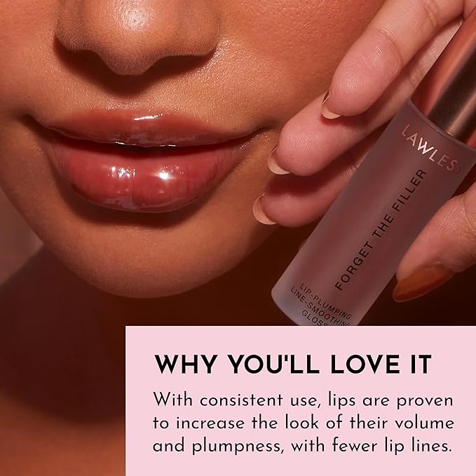 - Plumping Gloss: Experience immediate and long-term visible plumping, softening, and hydrating benefits with our Lawless Forget The Filler Lip-Plumper Line-Smoothing Gloss. This luxurious lip-plumping treatment and ultra-shiny gloss provide instant results, making lines appear filled and the lip surface smooth.