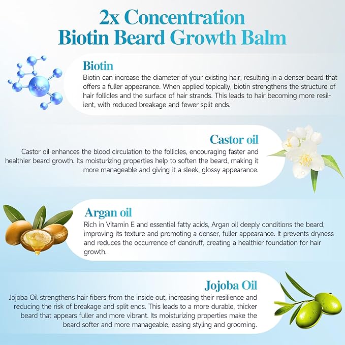 - Make Your Beard Thicker: MistySprite beard balm for men biotin is one of the key ingredients, which is essential for revitalizing hair follicles and promoting beard growth. It strengthens your mustache, reduces breakage, makes it thicke