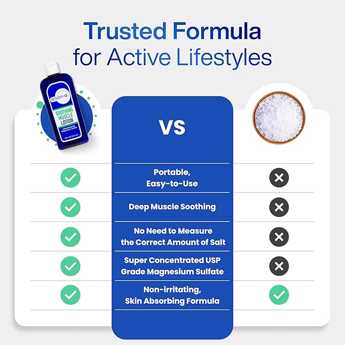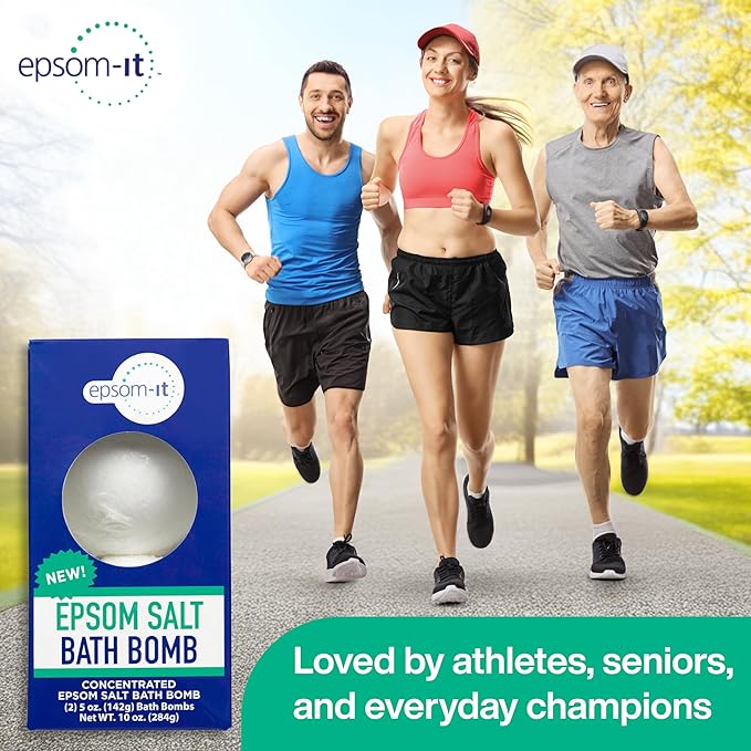 - Soothing Muscle Recovery - No glitter, no frills; just pure Epsom Salts for soaking in a convenient and easy-to-use bath bomb. Penetrating deep below the skin, Epsom-It Bath Bombs work to soothe muscles and joints after intense exercise and aid with general workout recovery and discomfort.