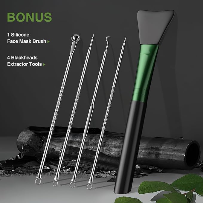 - 【Pimple Extractor Tools and Face Mask Brush】 The blackhead remover mask kit comes with value gifts: a silicone face mask brush and 4 professional blackhead remover pimple popper tools make it easier for you to use facial mask and remove blackheads acne easily. The comedone extractor removal tool comes with a handy travel case so you can handle blemishes on-the-go. (Make sure to clean tools before and after each use. Avoid applying mask on eyes, eyebrows and lips.)