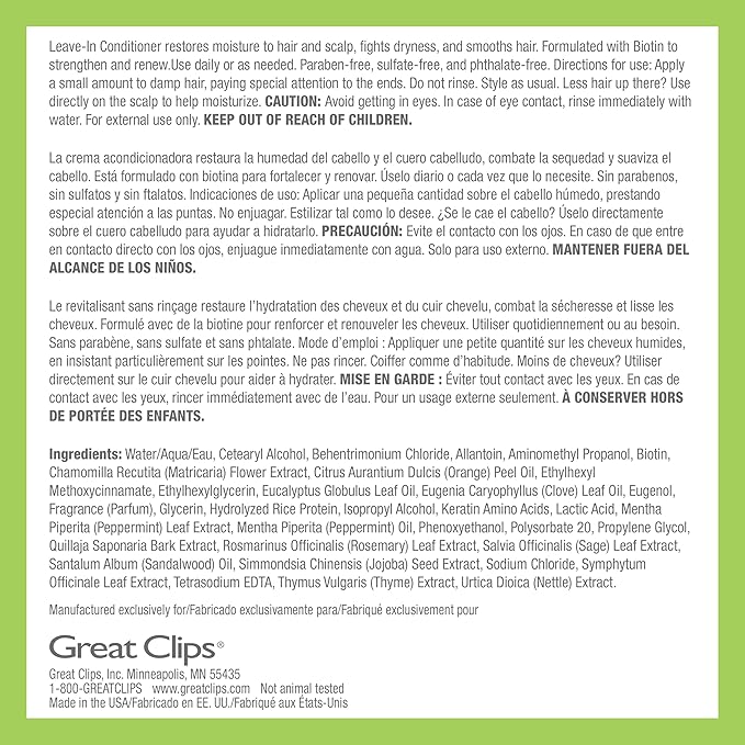 - HYDRATE + MOISTURIZE: Take care of your hair with this leave-in conditioner that includes biotin and jojoba. Each of these natural ingredients provide hydration to the scalp and help restore moisture to the hair.