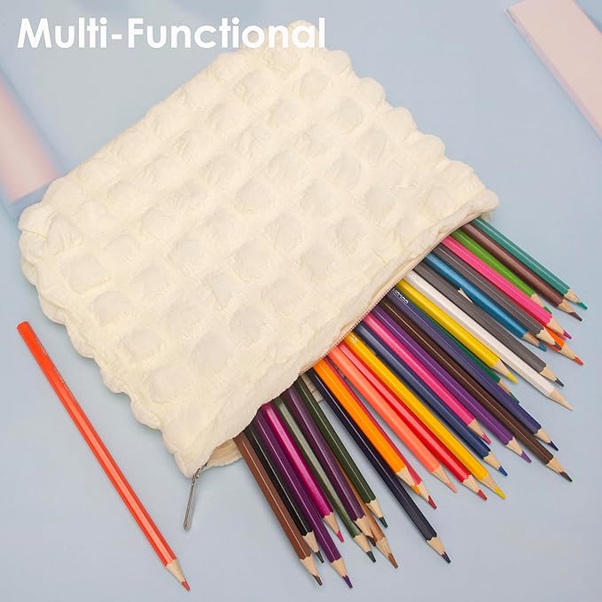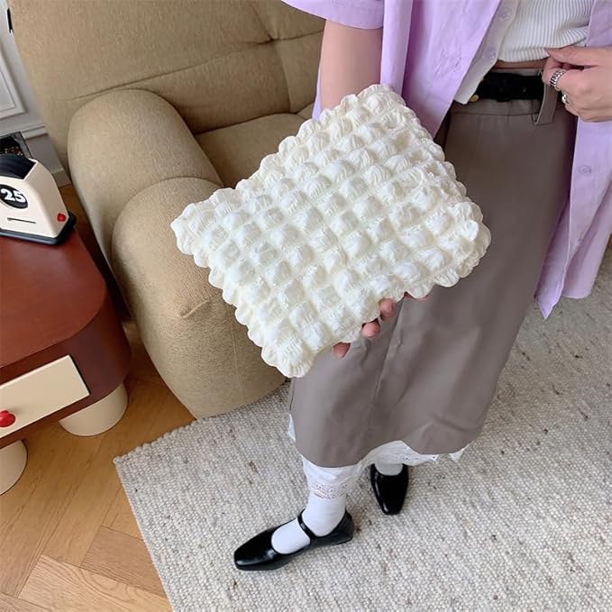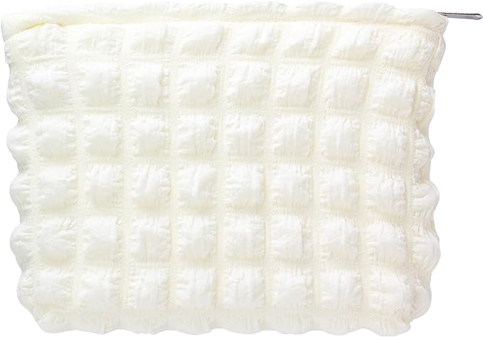 PAZIMIIK Floral Makeup Bag Large Cotton Zipper Pouch for Purse Travel Canvas Make Up Organizer for Women Cosmetic,Bubble Beige
