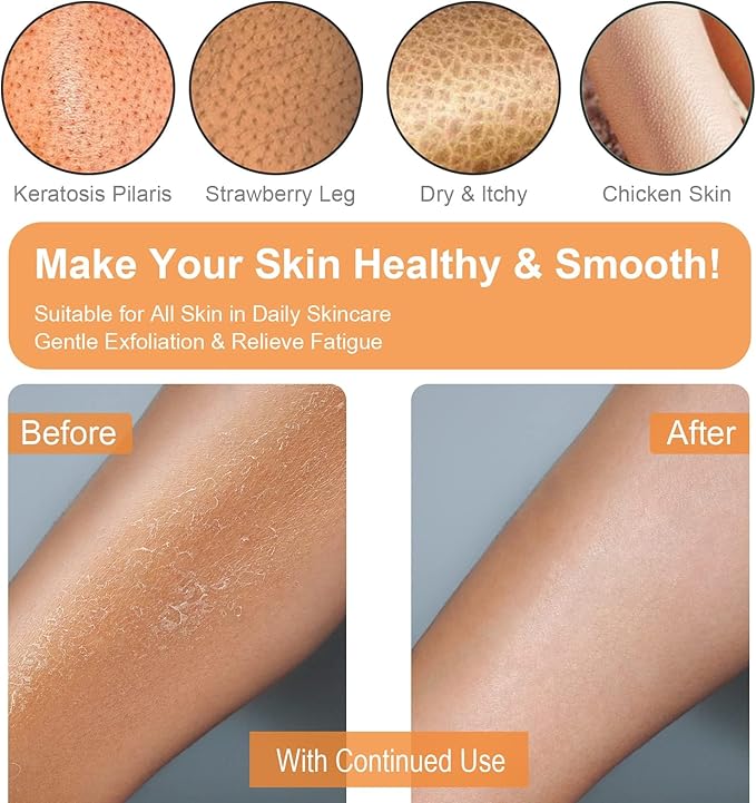 - 【Revive Healthy and Soft Skin】Use our Korean body scrub bath mitts to fight your itchy, bumpy, dry skin caused by keratosis pilaris. Your skin of body, arms, and legs will look radiant and healthier than ever before.
