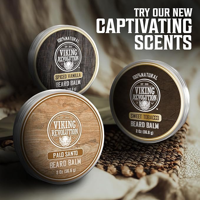 - Viking Beard Balm: Harness the power of beard mastery with our Palo Santo-scented beard balm, blending the rugged essence of sacred wood with soothing earthy undertones, capturing the spirit of strength and masculinity.