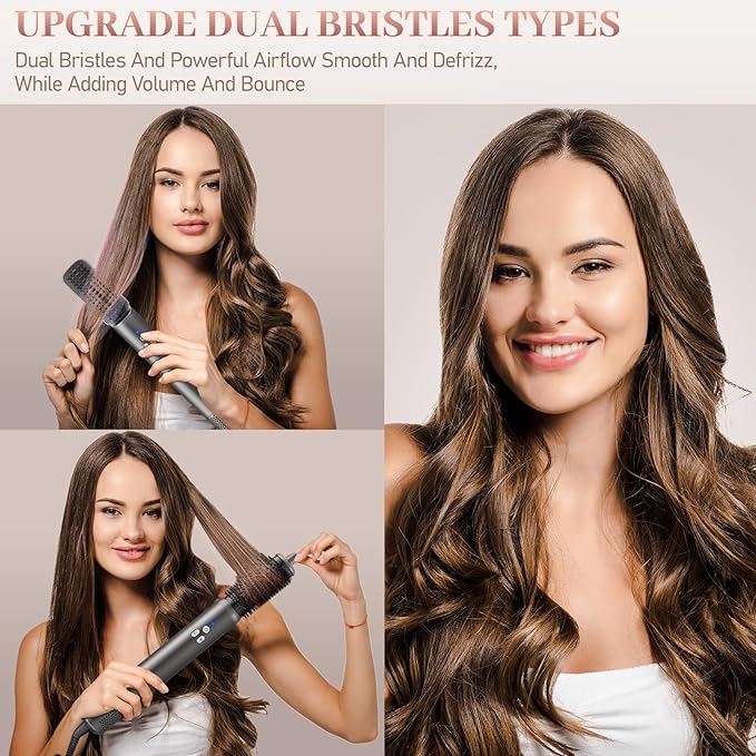 - 【CURL, VOLUMIZE, SMOOTH, & DRY】--The air hair styler compatible with every hair type, from straight to curly, our hair brush blow dryer allows for easy styling whether your hair is long, medium, or short.Combines drying, straightening, smoothing, curling, and volumizing in one tool,perfect for every style from curly to straight hair, our tool provides hydration multiplier, aiding in professional styling at home!