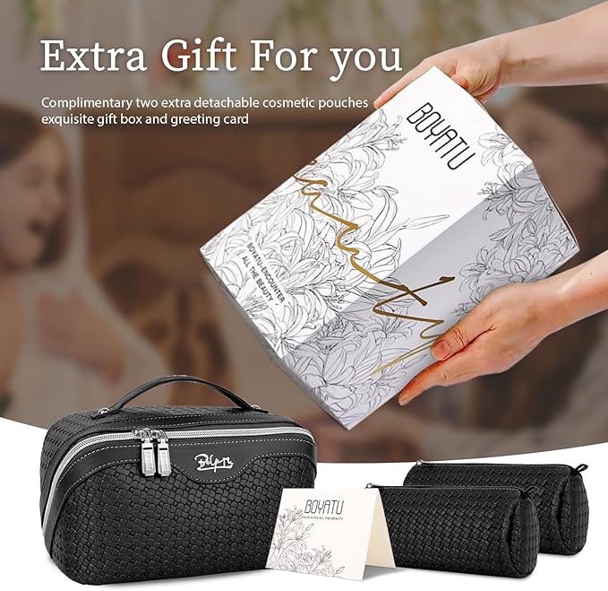 - Exquisite packaging: This travel make up bags for women comes beautifully packaged in an exquisite gift box, with a thoughtfully designed greeting card. It will be a great gift for ladies on Valentine's Day, Mother's Day, Birthdays, Christmas,Thanksgiving Day, Anniversary Day and more.