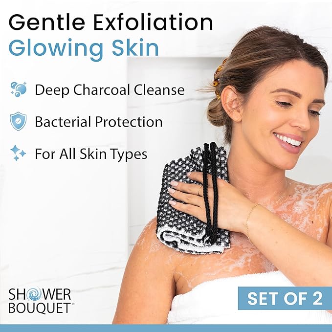 - DEEP CHARCOAL CLEANSE – This premium Japanese-style washcloth exfoliating towel contains activated charcoal to help remove dirt, oil, and impurities, leaving your skin revitalized and glowing.