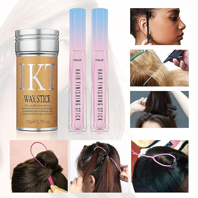 - 【High Quality Products】Topsy tail hair tool are made of flexible plastic materials, which are tough and durable and easy to rebound. Hair wax stick contain natural plant ingredients to shape your hair, smooth out frizz and dryness, and restore shine. Safe and effective, no residue