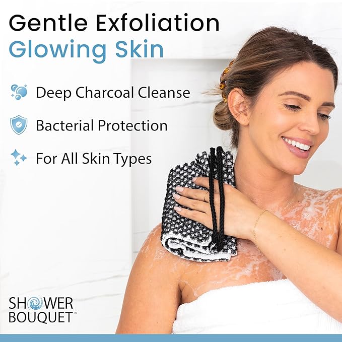 - DEEP CHARCOAL CLEANSE – This premium Japanese-style washcloth exfoliating towel contains activated charcoal to help remove dirt, oil, and impurities, leaving your skin revitalized and glowing.