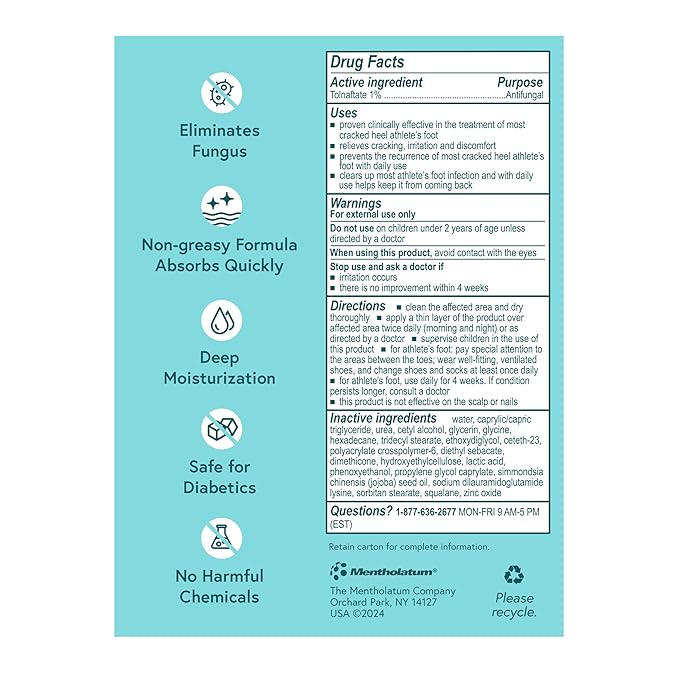 - TREATS PERSISTENT CRACKED HEELS: Mentholatum Heel Revival 1% tolnaftate heel cream provides immediate cracked heel treatment for relief of symptoms and treats the underlying cause of cracked heels
