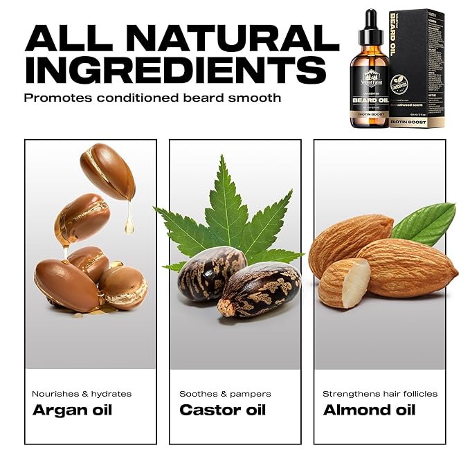 - Natural Ingredients: Beard care, the way nature intended; Dive into hydration with Argania and Almond, moisturize deeply with Castor, and shield with Vitamin E; As Unscented beard oil relaxes, Rosemary energizes; For the man committed to a natural beard journey