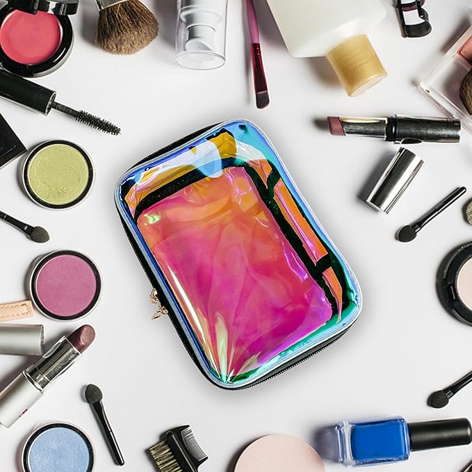 - 🌷【Wide Range of Uses】Our transparent holographic cosmetic bag can not only be used as a storage bag,waterproof bag,gift bag,frequently used item bag,but also can be used to store cash,glasses,keys,portable batteries,etc.This waterproof and dustproof tote makeup bag keeps everything safe and prevents liquid leaks