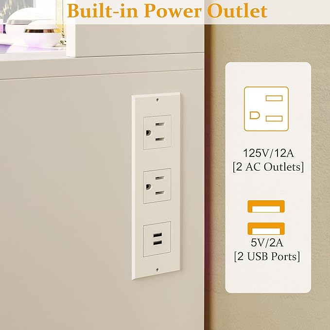 - Power Outlet & Easy Assembly:The white vanity desk with a power outlet, which provide power for your hair dryer, curling iron, and other electronic devices at the same time. Bringing more convenience to your daily life. The white makeup vanity comes with tools and numbered accessories, very easy to assemble following the step-by-step instructions