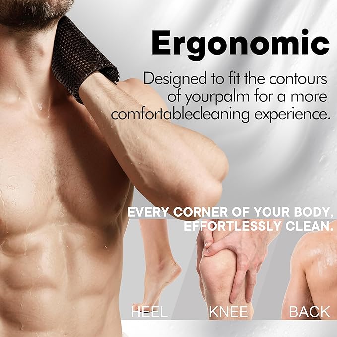 Bath Mitt - Exfoliating Glove, Honeycomb Body Scrubber,Massage Body Scrub Gloves for Home Spa,Mitt Sponges for Cleaning Body,Deep and Gentle,Fast foaming (Black(Standard,Large Size))