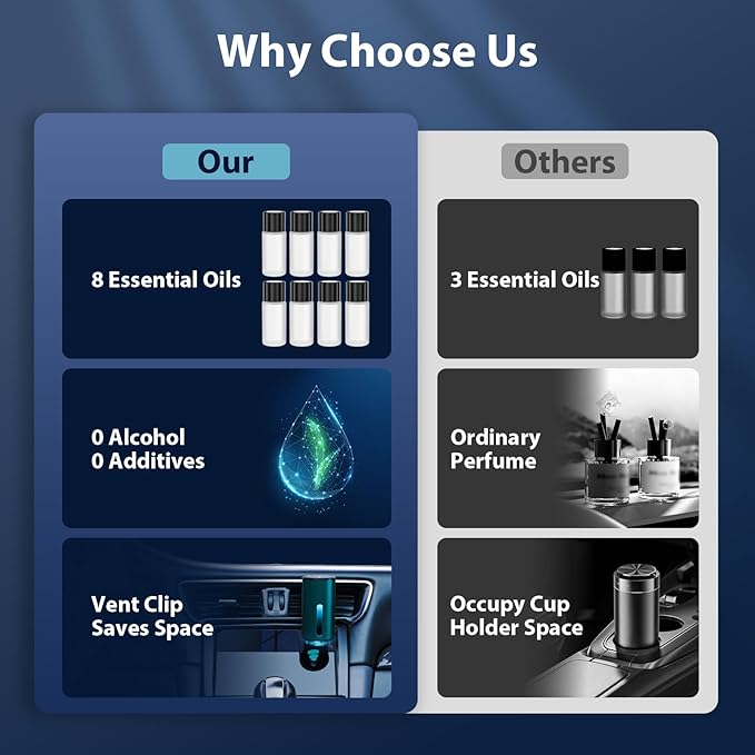- 【Safe and Durable】The olores para carro is constructed from high-quality aluminum alloy, featuring a sandblasted surface that enhances its strength and durability. The car fragrance included with this car oil diffusers is derived from natural plant essence extracts, ensuring that this car air freshener spray is safe for use