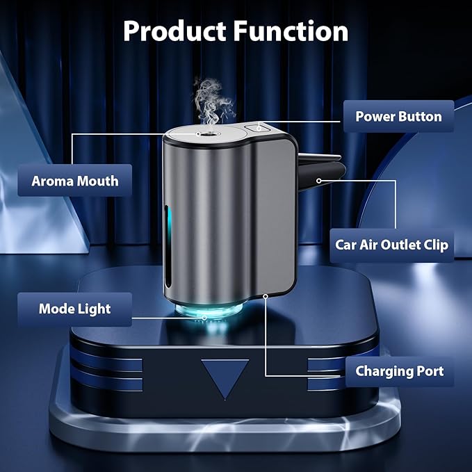 - 【Smart Car Air Freshener】The three-speed adjustable car air freshener diffuser can be adjusted and turned off freely. The car diffuser air freshener can also be turned on and off intelligently. This intelligent car aroma diffuser can be activated and deactivated, adjusting automatically by detecting the vehicle's running status to maintain a pleasant fragrance in the car