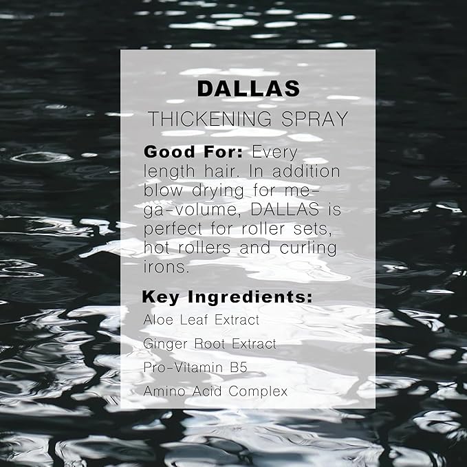 - For ultimate Texas-style big hair, use DALLAS, the quintessential spray for a mega blow-dry.