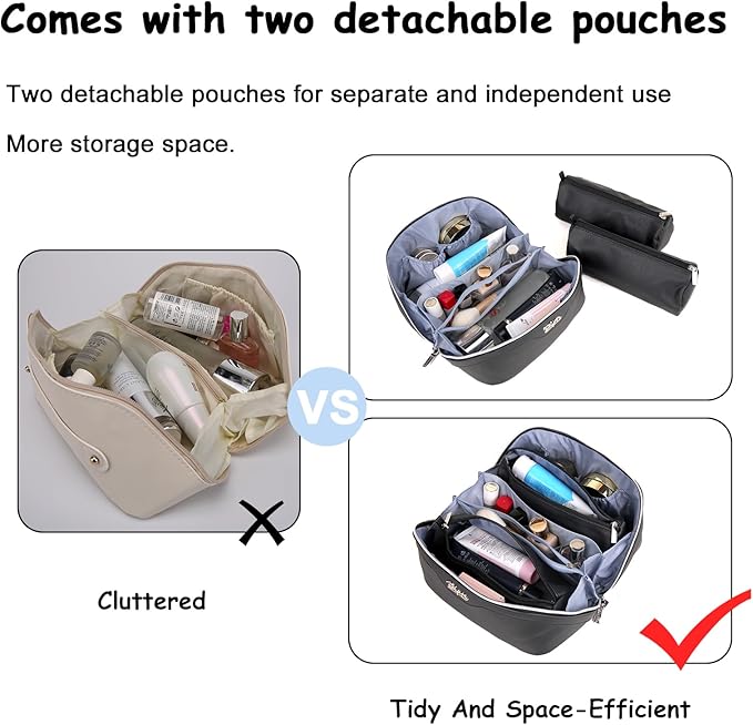 - 3 Pcs Makeup Bags Set: This travel make up bag comes with two detachable makeup pouches, ensuring optimal organization for your skincare products and cosmetics. Perfect for your travel, business trips, vacations, outdoor activities and picnics.