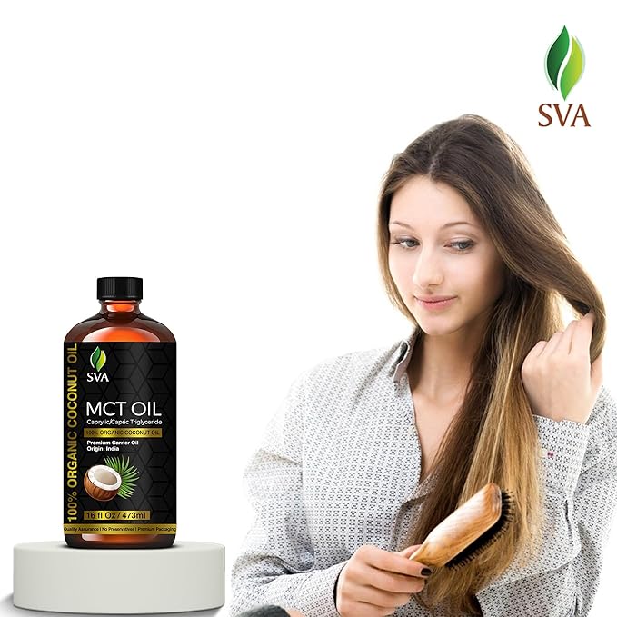 - Premium Quality Organic MCT Carrier Oil: SVA MCT Oil 16oz is obtained by cold-pressed extraction of Cocos nucifera. Our MCT Oil is organic, free of preservatives. It is not tested on animals. We care for you!