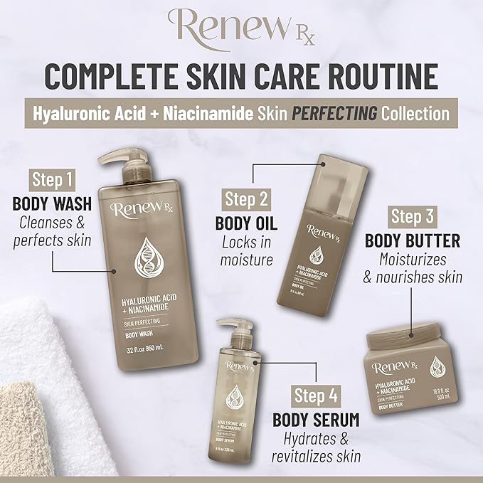 Hyaluronic Acid + Niacinamide Body Butter for Dry Skin – Deep Hydrating Skin Care, Skin Perfecting Vegan Skincare, 16 oz