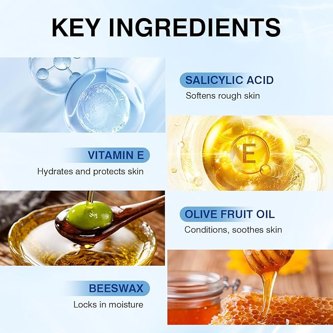 - Gentle Exfoliation & Hydration:Formulated with salicylic acid to gently smooth rough skin while providing long-lasting moisture for hands and feet. Helps soften dry, flaky areas without harsh irritation.