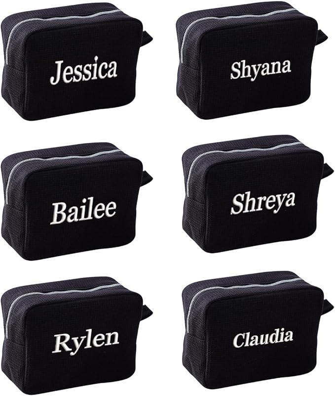 GOPHIE Personalized Embroidered Makeup Bag,Custom Waffle Fabric Cosmetic Pouch for Women, Travel Makeup Pouch (6, Black)