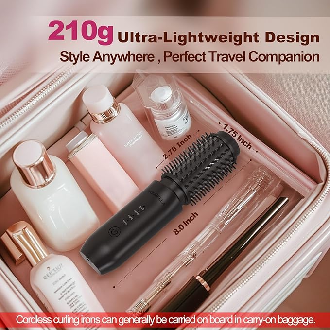- 【Mini & Cordless】This portable cordless curling iron brush is compact and lightweight, making it the perfect cordless curling brush for travel. Style your hair easily, whether at home or on the go, with this dual-purpose cordless hair curler.
