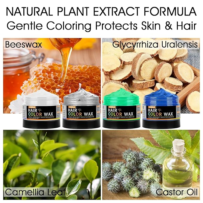 - Safe and Gentle Ingredients : Made from natural plant extracts, this hair color wax is ammonia-free and gentle on hair. Safe for both adults and children, offering a damage-free way to transform your look without the risks of permanent hair coloring