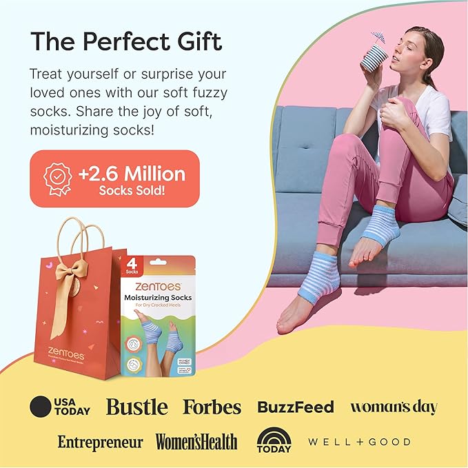 - Wake up to smoother, softer skin - Moisturize, heal and repair your dry, cracked heels while you sleep with ZenToes Moisturizing Gel Spa Socks. Our open toe design and soft, premium, materials are comfortable to sleep in, while our hydrating gel softens your heels overnight for a spa like treatment.