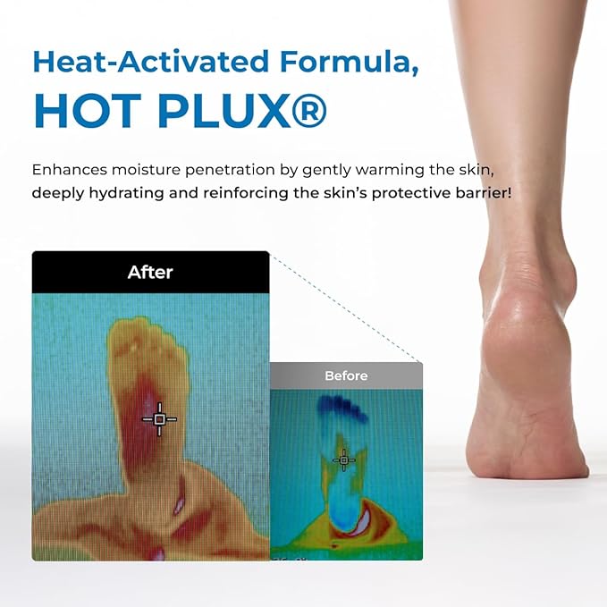 - ✔ Self-Warming Effect – Hot Plux technology gently warms the feet, enhancing absorption for deeper hydration.