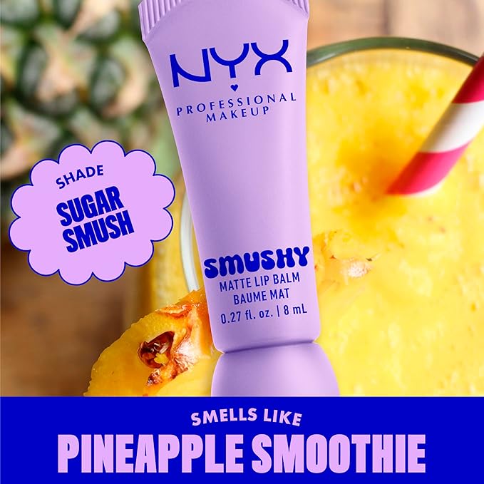 NYX PROFESSIONAL MAKEUP Smushy Matte Lip Balm, Tinted Lip Moisturizer with Soft, Matte Finish - Sugar Smush (Transparent)