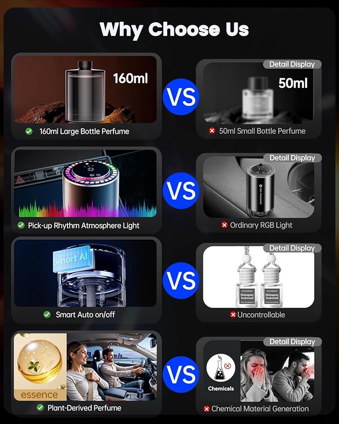 - 【Smart Auto On/Off】The air diffuser uses an advanced AI smart chip that can sense the vibration of the car. The diffuser automatically starts when the car starts, and enters standby mode when the car stops, freeing your hands without manually triggering the switch