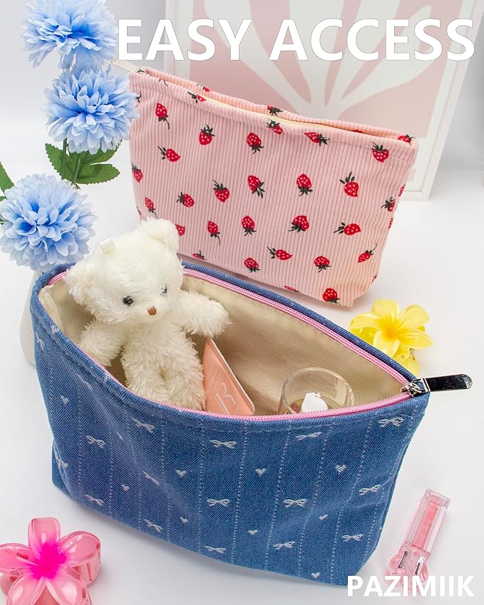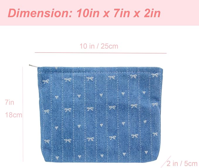 PAZIMIIK Makeup Bag Large Cotton Zipper Pouch for Purse Travel Canvas Make Up Organizer for Women Cosmetic,Jean Blue