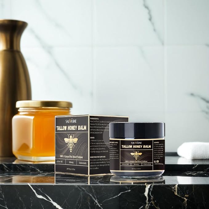 - 【 Rich in Nutrients 】The grass-fed whipped tallow honey balm rich in essential vitamins A, D, K, E, and antioxidants is like a supplement to your skin.Keep your skin moist,combat dryness while enhancing skin elasticity and radiance,leaving you radiant.