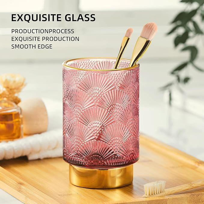 Makeup Brush Holder Organizer,Toothbrush Holders,Desk Pen Pencil Holder,Multifunctional Vintage Glass Brush Cup(A41-4-US)