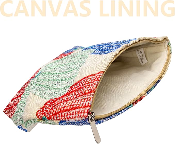 PAZIMIIK Makeup Bag Large Cotton Zipper Pouch for Purse Travel Canvas Make Up Organizer for Women Cosmetic,Linen Colorful