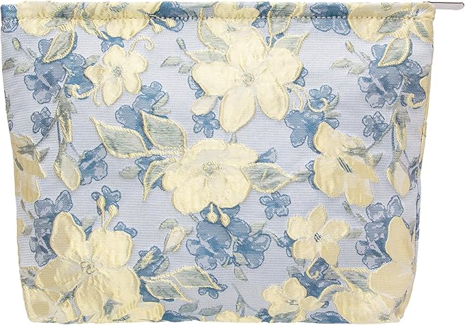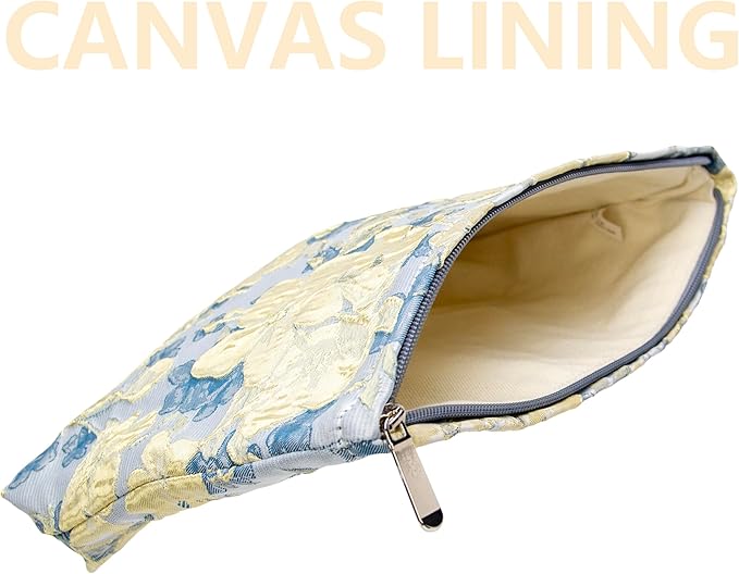 PAZIMIIK Makeup Bag Large Cotton Zipper Pouch for Purse Travel Canvas Make Up Organizer for Women Cosmetic,Brocade Blue