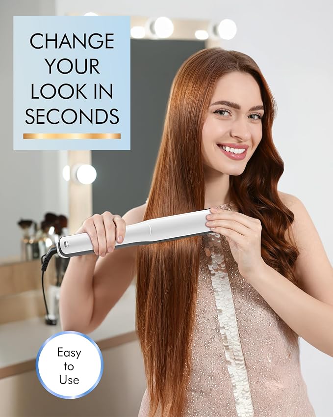 - Cool Air Airflow Function for Long Lasting Styles: Unlike traditional irons, this 2-in-1 straightener and curler has a cool air feature that blows out low wind from the side, which cools hair down as straightening, perfect for setting your hairstyle and minimizing heat damage, locking in shine and shape for longer-lasting curls and waves