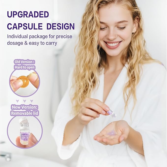 - 【Portable Capsule Convenience, Travel Size Hair Oil】Single-use capsules ensure fresh hair perfume oil for women on-the-go. Perfect for travel/gym, they prevent oxidation and provide precise dosing for all hair products - no mess, no waste, mini capsule hair care for women. Beach vacation essentials.