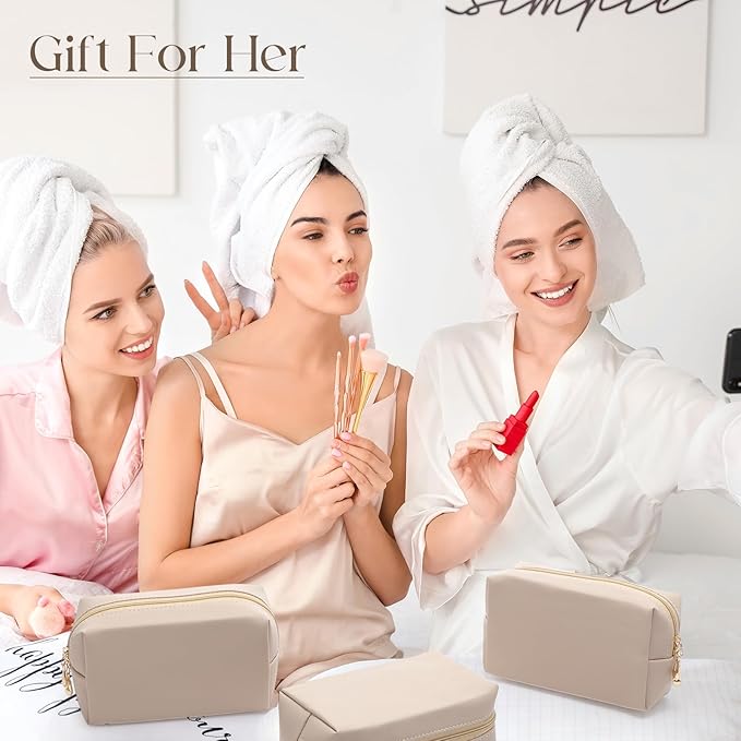 Kigeli 15 Pcs Aesthetic Makeup Bags PU Leather Cosmetic Pouches Waterproof Plain Toiletry Bags Makeup Pouches Bulk for Women Party Gift Travel Storage Organizer (Apricot Color)
