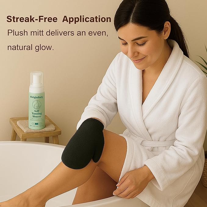 - Dual‑Step Tanning & Care Set:This two-piece routine pairs an exfoliating glove for pre‑tan smoothing with a tanning mitt for product application—start on a more refined surface, end with a more uniform, natural-looking result. Pre‑prep helps handle elbows, knees, and ankles, which often take on color faster.