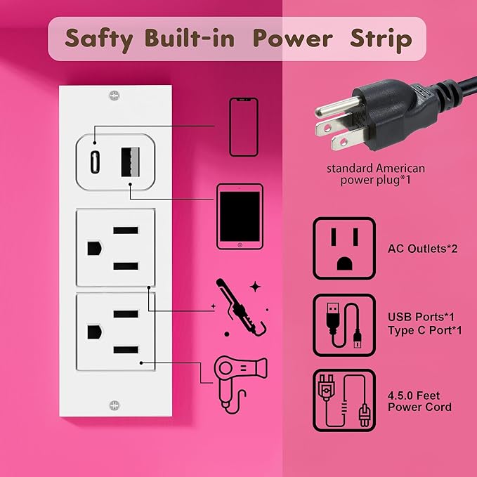 - [Power Outlet] The vanity bench is equipped with two sockets and two USB ports. It provides great convenience for charging your phone or other electronic device.