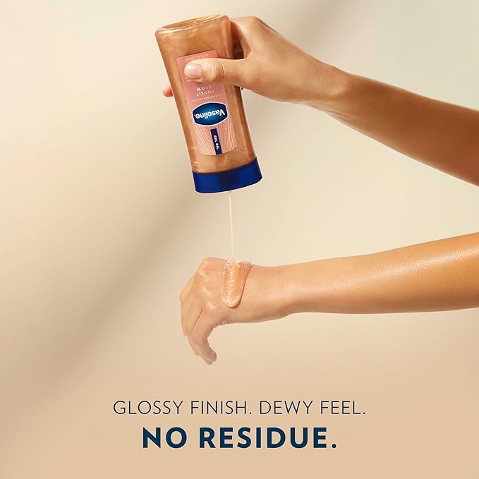 Vaseline Glazed and Glisten Sunlit Glow Body Gel Oil Vanilla Cocoa Shimmering with Ultra-Hydrating Lipids and 100% Pure Cocoa Butter, 6.8 Oz