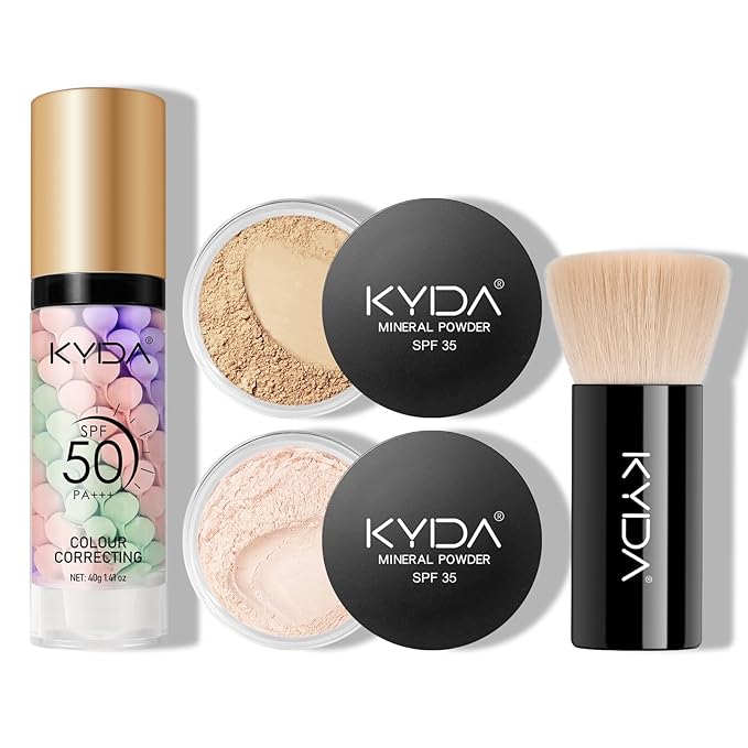 - KYDA MINERAL MAKEUP KIT –Our mineral makeup starter kit featuring a full size of SPF 50 Color Changing Facial Serum + SPF 35 Mineral Loose Foundation, a full size Foundation Brush, and Mineral Loose Setting Powder for a healthy-looking makeup effect.
