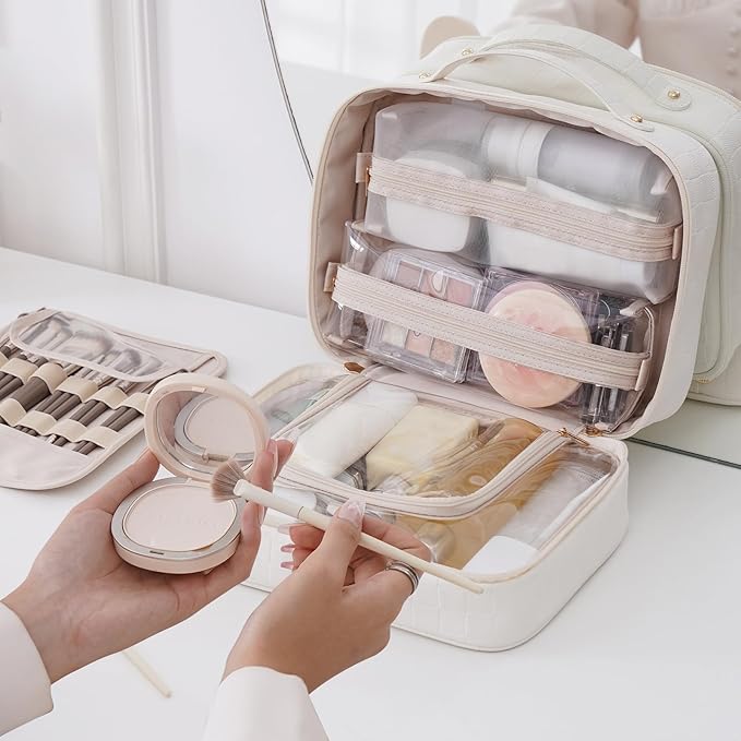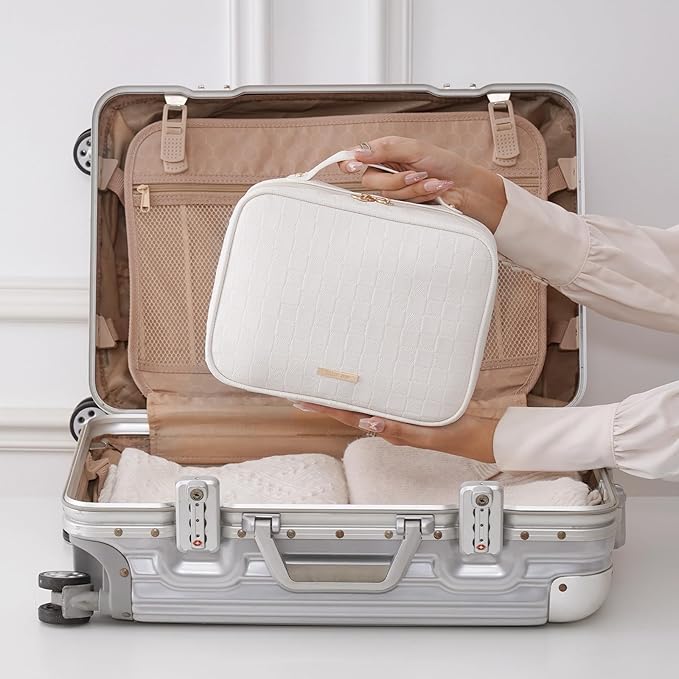 - Portable & Waterproof:Made of high-quality Water-resistant PU leather with a top handle for easy carrying. Ideal for business trips, travel, gym, camping, and home use—a must-have toiletries bag for women