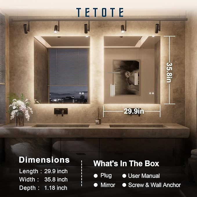 - ✨【Reliable packing & Easy installation】-TETOTE mirror is secured by reinforce foam box with extra protection.Plug and screws included.Installed with plug or hardwired,horizontal or vertical all by your choice.