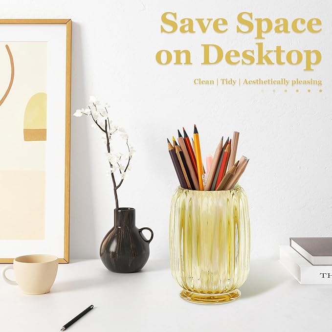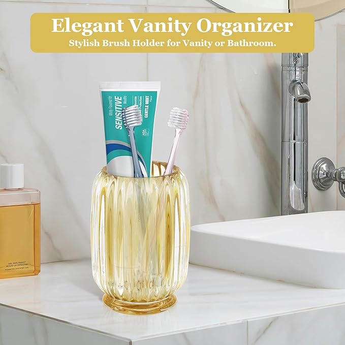 Makeup Brush Holder, Thick Glass Makeup Brush Organizer Cup, 4.8" Tall for Vanity Hair Brush Holder Brushes Storage, Makeup Brush Holder Organizer organizador de brochas de maquillaje Crystal Amber